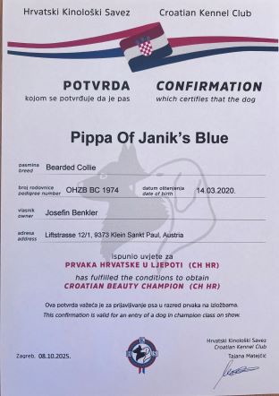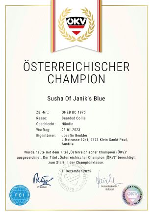 Pippa of Janik`s Blue ist nun offiziell Österreichischer Champion